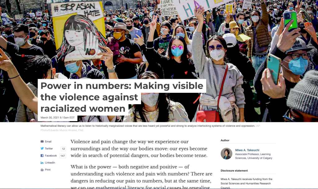 “Power in numbers: Making visible the violence against racialized women” — https://theconversation.com/power-in-numbers-making-visible-the-violence-against-racialized-women-157749